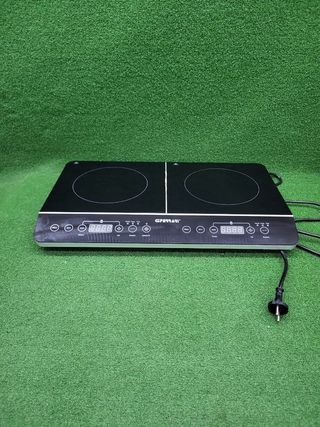 Hi-Tech Chef, 3500 W, Vidrio cerámico. Función especial Inducción, multiplaca, características de alta tecnología Marca G3 Ferrari Resistencias calentadoras 2 Dimensiones del producto 36,3f. x 60,3an. x 6,5al. centímetros Cocción de inducción rápida Temperatura ajustable de 60 a 240o C Temporizador de 180 minutos Amplia área de cocción Apagado de seguridad con olla vacía / apagado de seguridad sin olla Sistema de seguridad antisobrecalentamiento Potencia: 3500 W 15 A Máx. H-566440