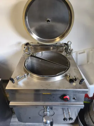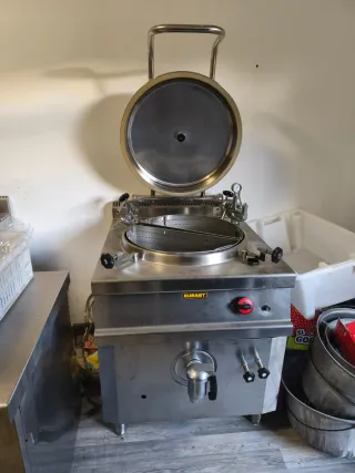 Marmita industrial EURAST acero inoxidable Marmita industrial marca EURAST, ideal para restaurantes, cocinas profesionales, catering o comedores. Fabricada en acero inoxidable, muy resistente y fácil de limpiar. Dispone de tapa abatible, grifo de vaciado frontal y mandos de control accesibles. Perfecta para preparar grandes cantidades de sopas, caldos, salsas, guisos, legumbres o pasta. En buen estado y lista para usar. Características: Marca: EURAST Uso profesional Acero inoxidable Tapa abatible Grifo de vaciado Cocción uniforme Se puede ver sin compromiso.