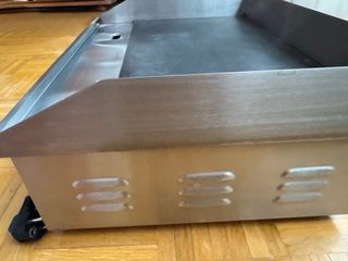 Plancha industrial de gas, utilizada únicamente en una ocasión. Ideal para negocios de hostelería. - Superficie de cocción amplia. - Construcción robusta en acero inoxidable. - Encendido electrónico. - Reguladores de temperatura independientes.