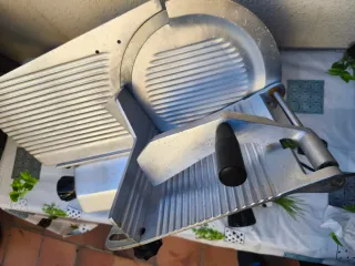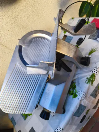 Cortadora de fiambre de uso profesional, ideal para establecimientos comerciales. - Construcción robusta en aluminio. - Cuchilla de acero inoxidable 30cm de diámetro. - Panel de control digital. -Valor nuevo 2800€