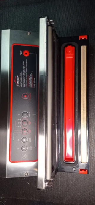 Envasadora al vacío profesional de la marca Lacor, ideal para conservar alimentos, en acero inoxidable. - Potencia: 130W - Presión: 0.8 bar - Ancho máximo de bolsa: 32 cm - Banda de sellado: 3 mm - Bomba de succión doble - Fabricada en Italia