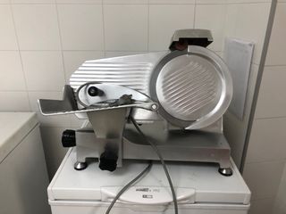 Cortafiambres de acero inoxidable, ideal para hostelería o uso doméstico. - Cuchilla de gran diámetro. - Protector de cuchilla. - Base estable.