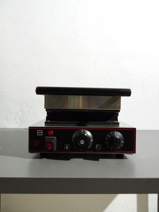 - El grill eléctrico de contacto ha sido concebido para su uso profesional. Para preparar carne, bocadillos, paninis y verduras. - Cubierta exterior está hecha de acero inoxidable, por lo que se limpia muy fácilmente. Además, cuenta con dos placas de contacto acanaladas que dan un aspecto rústico a los alimentos. - Asa recubierta de plástico termoaislante, garantiza un manejo seguro y sin riesgo de quemaduras. - Alcanza una temperatura de trabajo de aproximadamente 205°C en tan solo 6 minutos y una temperatura máxima de casi 300°C. - Potencia: 2,2 kW. - Tensión: 230 V.