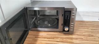 Microondas con función grill en acabado de acero inoxidable. Perfecto para tu cocina. - Puerta con ventana. - Plato giratorio de cristal. - Panel de control digital.
