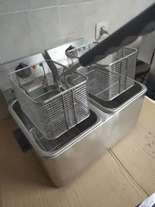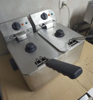 Freidora de doble cubeta de 4+4 litros de capacidad. Se encuentra en perfecto estado, casi sin uso. - Material: Acero inoxidable. - Dos cubetas independientes. - Mandos de control de temperatura. Bar panadería restaurante pizzería confitería pastelería cafetería ceveceria pubs hamburguesería carnicería pescadería ultramarinos nevera frigorífico marisqueria embutidos carne charcuteria nevera enfriador botellero bebidas energéticas coca cola cerveza vino congelador horno cocina lavandería electrodomésticos cocina hogar hostelería .... MUCHOS MÁS OBJETOS EN MI PERFIL..