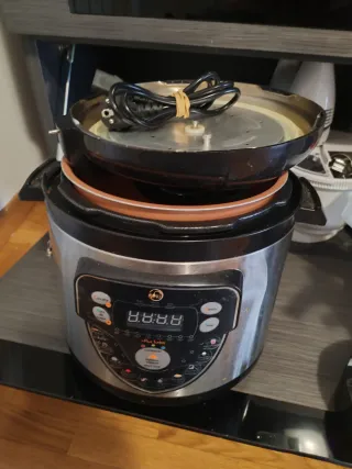 Olla eléctrica a presión de la marca Schneider con capacidad de 6 litros. Ideal para preparar una gran variedad de platos de forma rápida y sencilla. - Capacidad de 6 litros. - Panel de control digital con programas preestablecidos. - Exterior de acero inoxidable.
