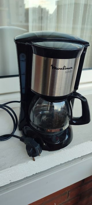 Vendo cafetera de filtro Moulinex compacta, con jarra de cristal de 600 ml (6 tazas), placa calefactora y sistema antigoteo. Incluye botón de encendido/apagado con luz y autoapagado a los 30 min. Compatible con filtros de papel o reutilizables (no incluidos, o en Mercadona caja de 100 unid x 2.50€). Fácil limpieza, piezas aptas para lavavajillas. Muy poco uso y en excelentes condiciones físicas y funcionales. Precio actual en Amazon: 40 €, la vendo por 25 €. Entrega en mano en Barcelona o envío a cargo del comprador. Medidas: 19,2fondo x 29,6 ancho x 23alto centímetros