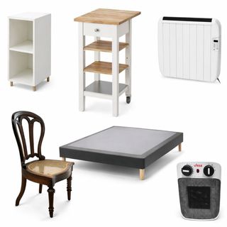 Cada mueble o electrodoméstico tiene su anuncio en mi perfil para precio y más detalles. - cama Ikea (sin colchón) - dos sillas antiguas - estantería Ikea - mueble auxiliar de cocina Ikea - calefactor de bajo consumo Haverland - Calefactor de baño cerámico Ufesa