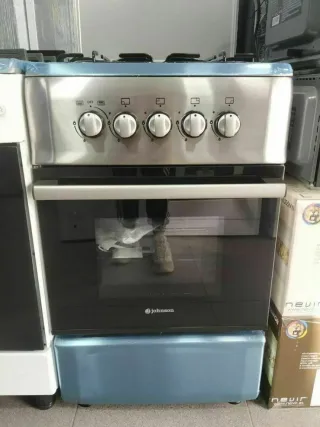 Cocina de gas Johnson con horno. - Encimera de acero inoxidable. - Cuatro quemadores. - Horno con grill. - Diseño moderno. Modelo COCI60BX.. Cocina de gas con 4 fuegos de cocción.. Horno de gas con capacidad de 63 litros. Autoencendido en la encimera y en el horno temporizador. Horno con quemador superior grill y. Preparada para Gas Butano.. Kit de Gas Natural incluido.... Incluido accesorio rustipoll.. GARANTÍA DE 3 AÑOS ....... ECO electrodomésticos.... calle Comte borrell 42 08015.barcelona... entrega inmediata Barcelona hasta 30 kilómetros . Vendemos todo tipo de electrodomésticos nuevos y segunda mano.
