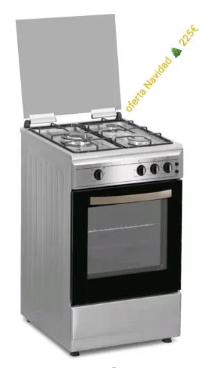 EAS electric EFG555X cocina de gas natural 4 fuego inoxidable cocina de gas butano 4 fuego inox Ancho 50 cm fundo 55cm alto 85cm Encimera de Gas de 4 fuegos acero color Inox Autoencendido en la encimera Tapa de metal Válvula de seguridad en quemadores FFD Horno de Gas Capacidad de 55 litros Quemador inferior Quemador superior Bandeja y rejilla horno tinemose en stock gas natural y gas butano 3 años de Garantía directamente con fabricante cubre todo España (WhatsApp ..645 78 27 92)