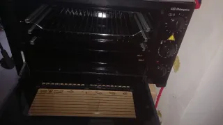 Vendo horno Cecotec Bake&Toast 6090 Black Gyro, con solo 6 meses de uso. La verdad es que nos ha ido genial con él, es super potente, amplio y muy completo. Lo compramos para un piso temporal y ahora ya no lo necesitamos, pero nos ha encantado. Tiene 60L, 2200W, convección, rustidor giratorio, luz interior y 12 funciones. Va de lujo y cocina muy bien, desde pizzas hasta asados o varias cosas a la vez. Está en buen estado, funciona perfecto y se entrega con accesorios. Tiene marcas normales de uso, visibles en fotos. Barcelona.