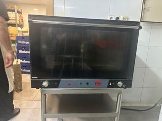 Horno de convección marca Metro, modelo Makro. - Acabado en acero inoxidable. - Panel de control con mandos. - Puerta con cristal. - Bandejas interiores. Incluyo la mesa de inox con balda inferior y regulable por 100€ mas Se entrega limpio y lavado