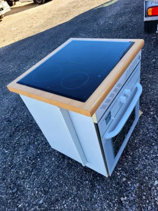 Ya desmontada. Esta en trastero. Facil transporte. Cocina CANDY TRIO 3 en 1: Vitrocerámica + Horno + Lavavajillas (Acero Inox). Vendo la unidad compacta Candy Trio, el electrodoméstico único que integra en un solo módulo de 60 cm de ancho (el espacio de un horno estándar): Placa de Cocción, Horno Eléctrico y Lavavajillas.Muy buen estado, funcionando perfectamente. Ancho: Aprox. 60 cm. Fondo: Aprox. 60 cm. Alto: Aprox. 86-87 cm.Placa de Cocción (Parte Superior): Tipo: VITROCERÁMICA de 4 zonas. Horno Eléctrico (Parte Media):Horno multifunción. Capacidad de unos 38-41 litros Lavavajillas Compacto (Parte Inferior): Capacidad