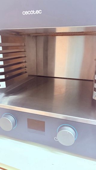 Horno eléctrico Cecotec Txuletaco 8000. - Diseño moderno en color gris. - Interior de acero inoxidable. - Dos mandos giratorios para control. - Pantalla digital integrada. SOLO LO USO MI MADRE UNA VEZ, pero ella es más tradicional y no lo ha querido
