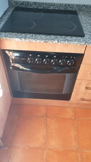 Se vende conjunto de horno y placa vitrocerámica. - Placa vitrocerámica con cuatro zonas de cocción. - Horno con puerta de cristal y tirador.
