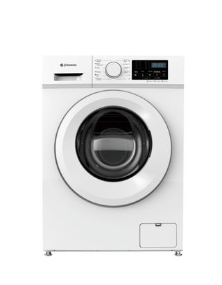 Lavadora de carga frontal Johnson en color blanco. Diseño moderno y panel de control digital. - Puerta frontal con acabado brillante. - Panel de control con pantalla digital. - Compartimento para detergente. - Patas ajustables para nivelación. Y vitrocerámica y horno