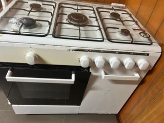 Cocina de gas con horno de la marca Meireles. Ideal para tu hogar. - Encimera de cristal templado. - Tres quemadores. - Puerta del horno con cristal. - Mandos frontales. No se ha utilizado nunca por desgracia. Tiene 87 cm de alto, 57 cm de fondo y 54 cm de ancho.