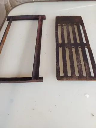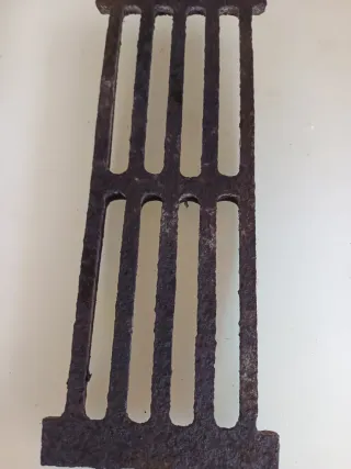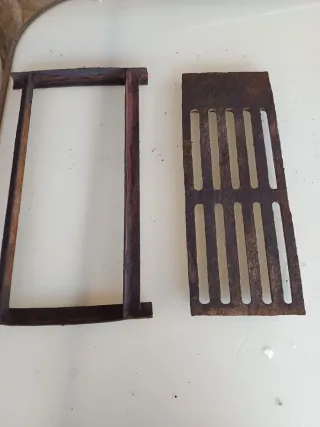 Piezas de hierro para cocina de leña Hergon. - Marco rectangular de hierro. - Rejilla de hierro con ranuras.lleva incluido el soporte Medida rejilla 38x14.5
