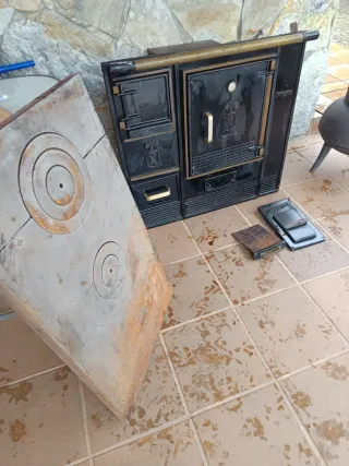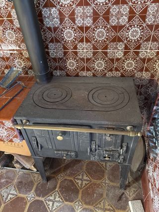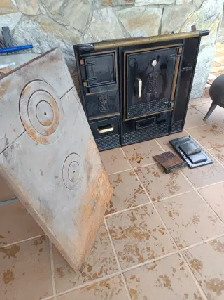 Cocina de leña marca imigas muy fuerte Con horno En buen estado Sin picazos Lleva placa de hierro fundido Con hornillos En buen estado Está completa para instalar Mide 85x78