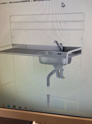 Mini cocina de hierro con acabado plateado y detalles en plástico. - Estructura principal de metal. - Componentes de plástico. - Diseño moderno y funcional.