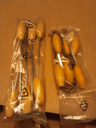 Set de fondue de hierro fundido, perfecto para compartir. - Incluye varios pinchos con mangos de madera.