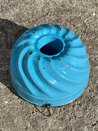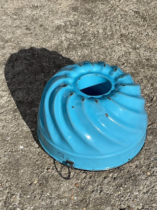 Molde antiguo de cocina. Grande. Polonia. Mediados de siglo. Muy buen estado. Hierro lacado en azul, blanco y negro. Preciosa pieza. Tiene un gancho para colgar. 23cm de diámetro #colección #hogar #decoración #antiguo #antiguedad #anticuario #vintage #collection #home #deco #antique #antiqueshop #vintage #handmade #artesanía #metal #hierro #herrero #herrería #bronce #latón