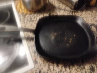 Set de cocina de hierro fundido - Olla y sarten de hierro fundido. - Usado sólo una vez para hacer pan