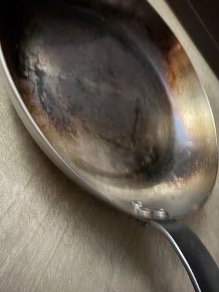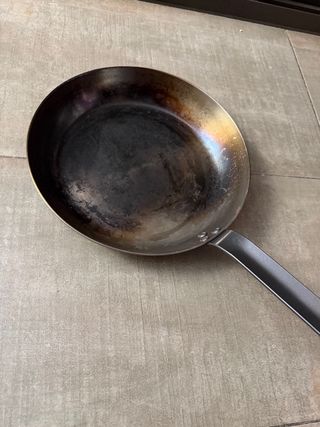 Wok de hierro mineral de la marca De Buyer. Un utensilio de cocina versátil y duradero. - Fabricado en hierro mineral. - Mango de metal. - Diseño clásico y funcional. - Para cocinar sin tóxicos - Diámetro 28cm - Solo se ha usado 3 veces