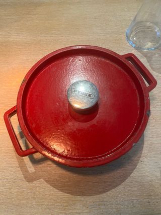Olla de hierro fundido con acabado en color rojo y tapa con pomo. 25 cm 8 cm altura - Material: Hierro fundido. - Color: Rojo. - Marca: Pyrex.