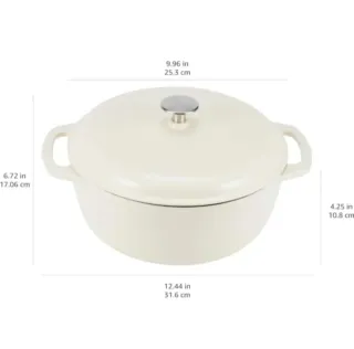 Amazon Basics Cazuela de hierro fundido esmaltado tipo «horno holandés», Redondo, 4.1 L, Blanco Material Metal Marca Amazon Basics Capacidad 4,1 Litros Color Blanco Forma Redondo Cuidado del producto Lavar a mano únicamente