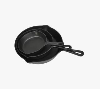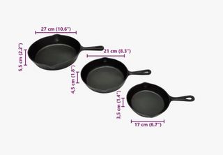 Set de tres sartenes grill de hierro fundido, perfectas para cocinar una gran variedad de platos. 8758504928313 #28 - Sartén grande: 27 cm (10.6) de diámetro y 5.5 cm (2.2) de alto. - Sartén mediana: 21 cm (8.3) de diámetro y 4.5 cm (1.8) de alto. - Sartén pequeña: 17 cm (6.7) de diámetro y 3.5 cm (1.4) de alto.
