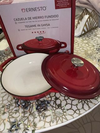 ✅ EN MUY BUEN ESTADO ✅ - ESTA RAYADA TAL Y COMO SALE EN LAS FOTOS 🏷️ Marca: Amazon Basics 🎨 Color: blanco 📝 Descripción: Cazuela de hierro fundido esmaltado para cocinar, estofar y asar en horno hasta 260 °C. Ideal para amantes de la cocina que buscan distribución uniforme del calor y versatilidad en sus recetas. LPNWE287818684 - B/014 🔑 Palabras clave: cazuela, hierro fundido, horno, cocina, estofar 🔗 Relacionadas: cocina, asado, estofado, utensilios de cocina, recetas, gastronomía, horno, accesorios cocina, calor uniforme, conservación alimentos, marinar, tapa segura 📦 Cazuela hierro fundido horno blanco
