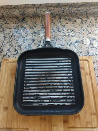 Plancha de cocina grill con mango de madera