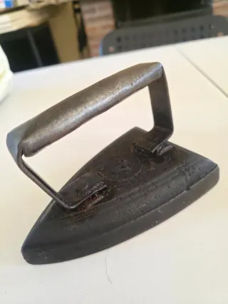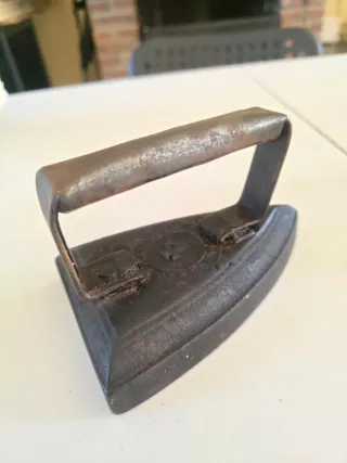 Plancha antigua de hierro macizo, de las que se calentaban al fuego para planchar ropa. Pieza original antigua, ideal para decoración rústica, casas de campo, coleccionistas o escaparates. Tiene pátina y señales de uso propias de su antigüedad, lo que le da carácter vintage. Muy robusta y pesada. Perfecta como elemento decorativo en cocinas rústicas, chimeneas o casas rurales.