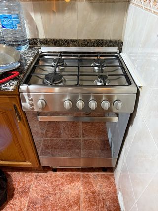 Cocina de gas completa con horno. - Encimera de acero inoxidable. - Parrillas de hierro fundido. - Puerta del horno con cristal. Recogida en Burjassot