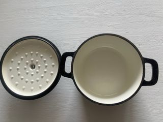 Cocina Saludable Compatible con todo tipo de cocinas Olla de hierro fundido con una capacidad de 1.13 litros. Su diseño combina un acabado exterior negro con detalles plateados en el asa y la tapa. Nuevo en su caja instrucciones y garantía - Material: Hierro Fundido - Color: Negro y plateado. Recogida Ibiza Marina Botafoch Talamanca
