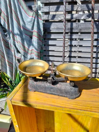 Balanza antigua de latón y hierro