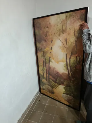 Cuadro decorativo de gran tamaño, 163x 97 cm-- Año 1985 - Firma: Rufino, acuarela paisaje otoñal minimalista( En Tendencia ) - Alto: 163 cm. Es pesado, por eso --No envio, Recoger en mano -- Por detrás plancha de madera y estructura hierro, buena Obra - Se recoge en persona en ALCOY Hay q limpiar bien el marco madera. Visita mi perfil para ver más cuadros de todo tipo, realizados a mano, buenas firmas. Oro plata estilo moderno vintage midcentury oro plata movil joyas Sol nórdico boho silla mesa sillón Cheslonge figura lladro escultura Porcelana juego de te café lechera Plato sartén cocina baño bañera ducha móvil Xiaomi
