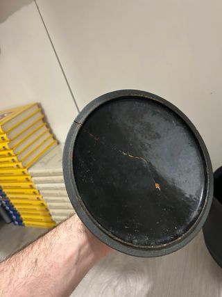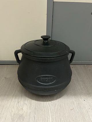 Olla de hierro fundido con asas y tapa. Tira una raja en la tapa, pero es normal no es una olla de más de 30 años. Funciona perfectamente - Capacidad de 5 litros. - Diseño clásico y robusto.