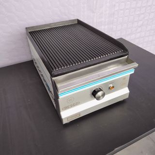 Maquinaria de Hostelería!!! Hacemos envíos a toda península ☎️ Llama y Whatsapp 621076506 Plancha de Hierro Fundido con Placa Ranurada de 30 cm de ancho en modelo sobremesa Gas. Estructura de acero. Dimensiones Placa: 29x41 cm. Grosor Placa: 8 mm. Temperatura de 50-270 ºC. Cajón de recogida grasas. Peso: 12 kg. Potencia: 1,25 Kw. Medidas: 29x44x24 cm