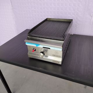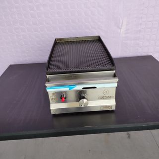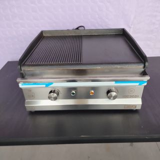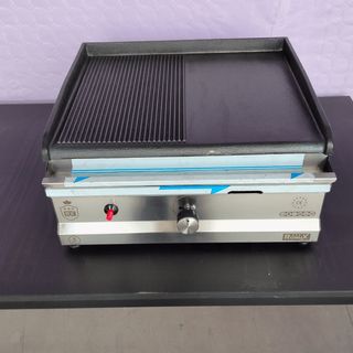Maquinaria de Hostelería!!! Hacemos envíos a toda península ☎️ Llama y Whatsapp 621076506 Plancha de Hierro Fundido con Placa Mitad Ranurada/ Mitad Lisa de 50 cm de ancho en modelo sobremesa Gas. Estructura de acero. Dimensiones Placa: 48x41 cm. Grosor Placa: 8 mm. Temperatura de 50-270 ºC. Cajón de recogida grasas. Peso: 25 kg. Potencia: 2,5 Kw. Medidas: 48x43x24 cm