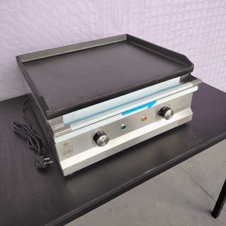 Maquinaria de Hostelería!!! Hacemos envíos a toda península ☎️ Llama y Whatsapp 621076506 Plancha de Hierro Fundido con Placa Lisa de 50 cm de ancho en modelo sobremesa Eléctrica. Estructura de acero. Dimensiones de la Placa: 48x41 cm. Grosor de la Placa: 8 mm. Temperatura de 50-270 ºC. Cajón de recogida de grasas. Peso: 25 kg. Potencia: 2,5 Kw. Voltaje: 220 V Medidas: 48x43x24 cm