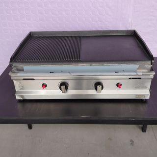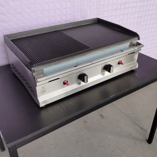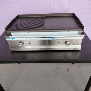 Maquinaria de Hostelería!!! Hacemos envíos a toda península ☎️ Llama y Whatsapp 621076506 Plancha de Hierro Fundido con Placa Mitad Ranurada/ Mitad Lisa de 70 cm de ancho en modelo sobremesa Gas. Estructura de acero. Dimensiones Placa: 68x41 cm. Grosor Placa: 8 mm. Temperatura de 50-270 ºC. Cajón de recogida grasas. Peso: 35 kg. Potencia: 2,8 Kw. Medidas: 68x43x24 cm