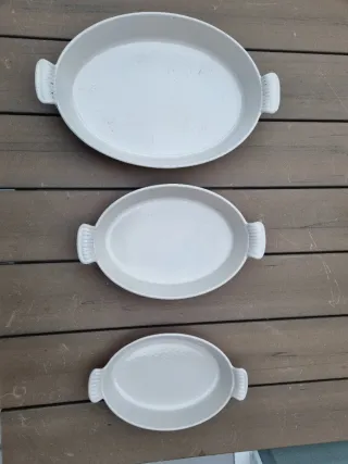 Cazuelas de hierro fundido y ceramica de 24 , 28 y 35 cm. totalmente anti-adherente. - Apara inducción y vitrocerámica, fuego y horno. Muy resistente, no se raya. - Acabado en blanco. - Hay otras 2, una de 28 cm. Y otra de 35 cm. - Los precios son 16 y 20 € respectivamente. SE VENDEN POR SEPARADO