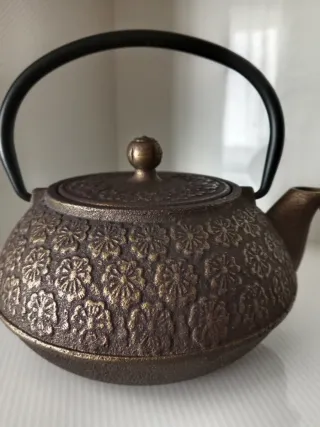 Tetera de hierro fundido con un bonito diseño en relieve. - Cuerpo con patrón de flores. - Asa negra. - Tapa con pomo.Capacidad 600ml