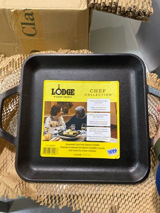 Parrilla cuadrada de hierro fundido de la marca Lodge, parte de la colección Chef. Sirve para todo tipo de cocinas , fuego, gas, barbacoa, vitrocerámica, inducción Nueva sin estrenar Precio original 70€ - Modelo: Seasoned Cast Iron Square Griddle. - Tamaño: 11 pulgadas (27.9 cm). - Diseño con asas para un fácil manejo