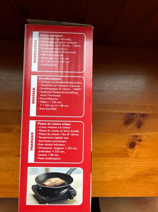 Placa de cocción eléctrica Bestron AHP112. - Diseño compacto y moderno. - Ideal para cocinas pequeñas o como fuente de calor adicional. - Incluye manual de instrucciones. - Placa de cocción en hierro fundido de alta resistencia. - 1500 W - Temperatura variable controlada por termostato - Carcasa resistente al calor. - Patas antideslizantes. -165 mm de diametro