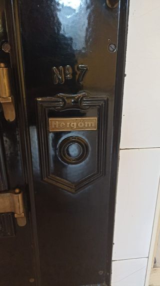 Se vende frente de cocina de hierro fundido, marca Hergom. - Diseño clásico y robusto. - Detalle de logo H en el lateral izquierdo. - Placa con Nº 7 y logo Hergom en el lateral derecho. - Puerta principal con termómetro y cierres decorativos. Precio 150€ algo negocieble