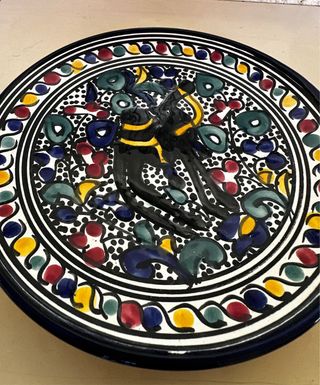 • Precioso plato ceramico colores. • Decoracion manual pintado a mano, motivo floral y camello, negro blanco rojo azul verde amarillo. • Perfecto estado. Realizo envíos 📦 horno de leña pueblo vajilla olla perol cacerola bandeja ensaladera rural rustico barbacoa horno gas brasa cocina antigua vintage clasico isabelino vitroceramica cubiertos vasos copas copas vaso jarra lechera bidon bar restaurante cocido legumbres asturias gallego galicia cantabria guiso artesania marroqui tallado tallar cincel marroquineria arabe chino japones asiatico salon habitacion bar chillout oro plata cobre madera casa rural parador hotel museo chimenea salon