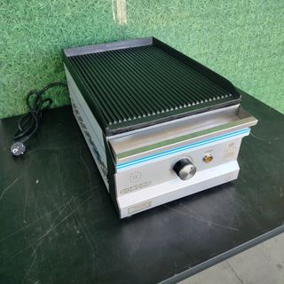 Maquinaria de Hostelería: Mobiliario y Productos para Profesionales y Particulares. Envíos a toda España 📞 684757283 ⛔ Precio + BAJO Grill profesional Eléctrico de sobremesa con placas Ranuradas de 40 cm de ancho. Carcasa de acero inoxidable. Temperatura de 50-300 ºC. Cajón de recogida de grasa. Placas de hierro fundido. Peso: 21 kg. Patas de goma. Interruptor de encendido. Potencia: 1,8 kw. Voltaje: 220 V. Medidas: 40x35x25 cm